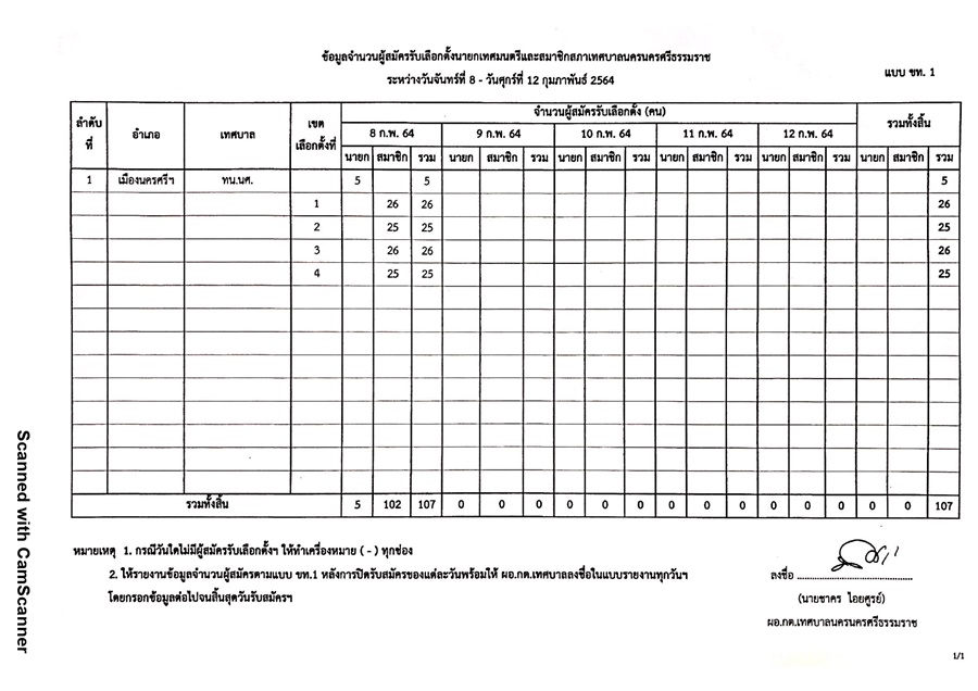 ตามที่เทศบาลนครนครศรีธรรมราช ได้กำหนดการรับสมัครสมาชิกสภาเทศบาลนครนครศรีธรรมราชและนายกเทศมนตรี นครศรีธรรมราช ในระหว่างวันที่ 8-12 กุมภาพันธ์ 2564 เวลา 08.30 -16.30 น. ณ หอประชุมเมืองเทศบาลนครนครศรีธรรมราช สวนสาธารณะสวนสมเด็จพระศรีนครินทร์ ‘84(ทุ่งท่าลาด)