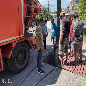 วันจันทร์ที่ 15 สิงหาคม 2565 เทศบาลนครนครศรีธรรมราช โดยกองสาธารณสุขและสิ่งแวดล้อม ลงพื้นที่ ดูดท่อถนนเทวบุรี