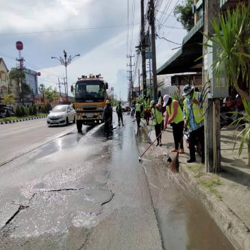 วันจันทร์ที่ 27 มิถุนายน 2565 เทศบาลนครนครศรีธรรมราช โดยกองสาธารณสุขและสิ่งแวดล้อม ลงพื้นที่ ฉีดล้างทำความสะอาดถนนกระโรม