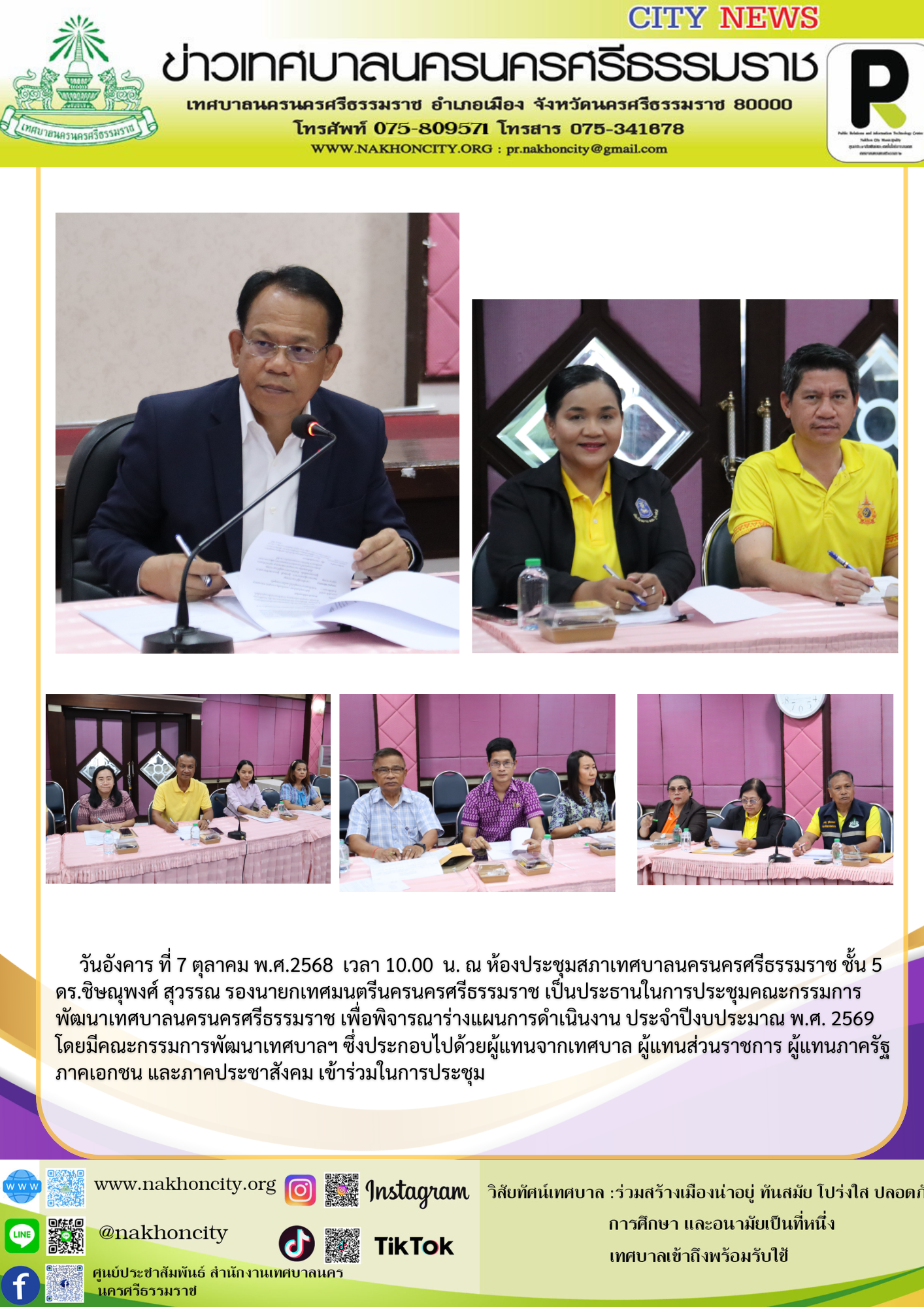 วันศุกร์ที่ 4 กรกฏาคม พ.ศ.2568 เจ้าหน้าที่งานป้องกันควบคุมโรค ลงพื้นที่ ณ โรงเเรียนเทศบาลวัดท่าโพธิ์ โรงเรียนเทศบาลวัดใหญ่ โรงเรียนเทศบาลวัดเสมาเมือง และโรงเรียนนานาชาติเทศบาลนครนครศรีธรรมราช เพื่อพูดคุยแนวทางในการดำเนินการ "โครงการเฝ้าระวัง ป้องกันและควบคุมโรคระบาดหรือโรคติดต่ออุบัติใหม่ ในเขตเทศบาลนครนครศรีธรรมราช