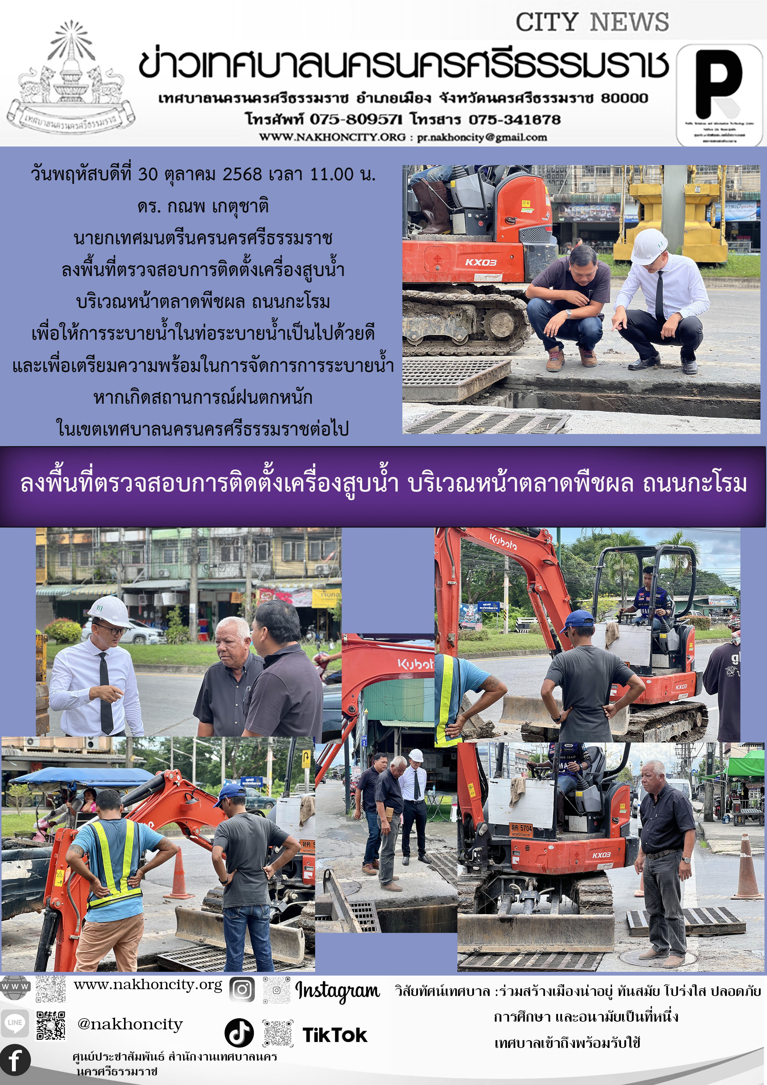 วันศุกร์ที่ 4 กรกฏาคม พ.ศ.2568 เจ้าหน้าที่งานป้องกันควบคุมโรค ลงพื้นที่ ณ โรงเเรียนเทศบาลวัดท่าโพธิ์ โรงเรียนเทศบาลวัดใหญ่ โรงเรียนเทศบาลวัดเสมาเมือง และโรงเรียนนานาชาติเทศบาลนครนครศรีธรรมราช เพื่อพูดคุยแนวทางในการดำเนินการ "โครงการเฝ้าระวัง ป้องกันและควบคุมโรคระบาดหรือโรคติดต่ออุบัติใหม่ ในเขตเทศบาลนครนครศรีธรรมราช