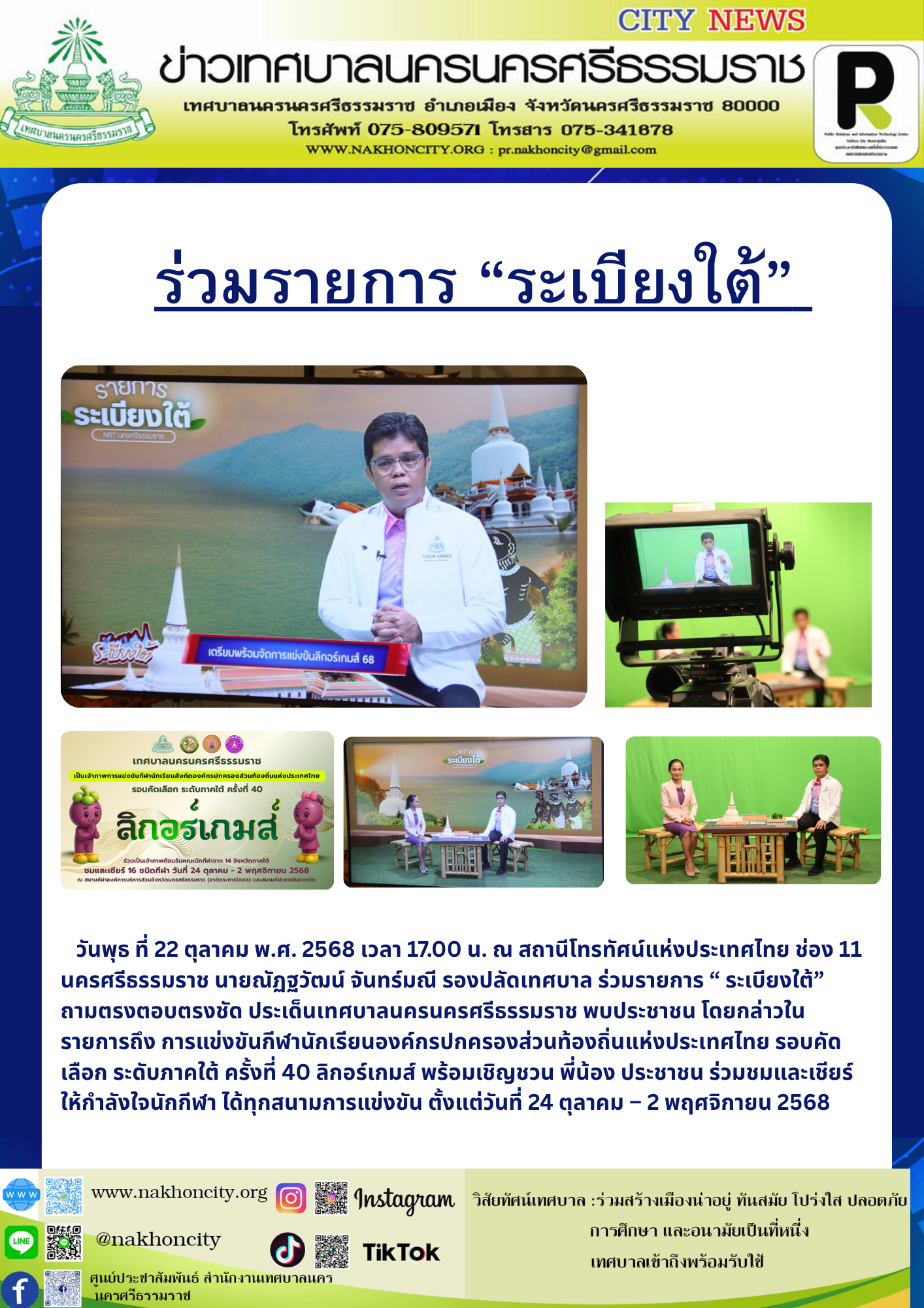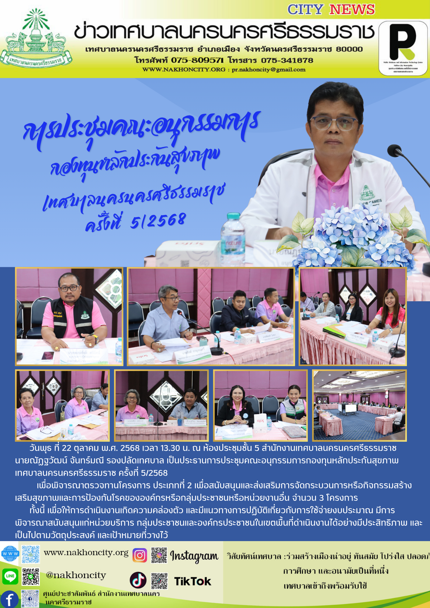 วันศุกร์ที่ 4 กรกฏาคม พ.ศ.2568 เจ้าหน้าที่งานป้องกันควบคุมโรค ลงพื้นที่ ณ โรงเเรียนเทศบาลวัดท่าโพธิ์ โรงเรียนเทศบาลวัดใหญ่ โรงเรียนเทศบาลวัดเสมาเมือง และโรงเรียนนานาชาติเทศบาลนครนครศรีธรรมราช เพื่อพูดคุยแนวทางในการดำเนินการ "โครงการเฝ้าระวัง ป้องกันและควบคุมโรคระบาดหรือโรคติดต่ออุบัติใหม่ ในเขตเทศบาลนครนครศรีธรรมราช