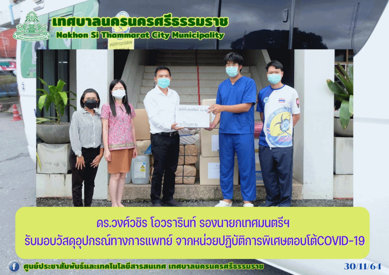 ดร.ดร.วงศ์วชิร โอวรารินท์ รองนายกเทศมนตรีนครนครศรีธรรมราช รับมอบวัสดุอุปกรณ์ทางการแพทย์ |