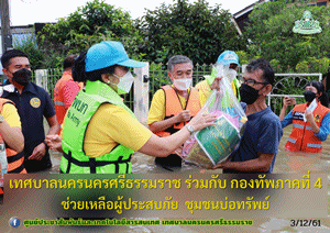 รองนายกเทศมนตรีนครนครศรีธรรมราช ลงพื้นที่มอบถุงยังชีพช่วยเหลือ ผู้ประสบภัยน้ำท่วม ชุมชนบ่อทรัพย์ ร่วมกับกองทัพภาคที่ 4 |