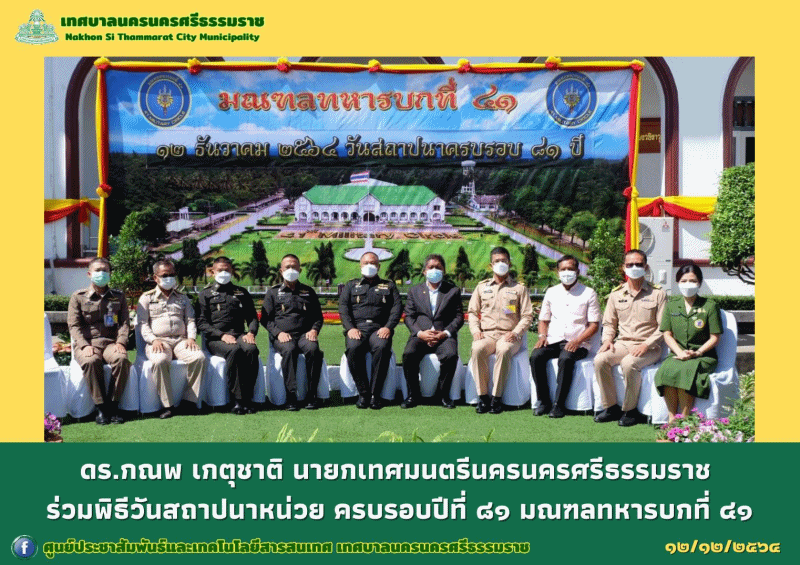 ดร.กณพ เกตุชาติ นายกเทศมนตรีนครนครศรีธรรมราช ร่วมพิธีวันสถาปนาหน่วย ครบรอบปีที่ ๘๑ มณฑลทหารบกที่ ๔๑ |