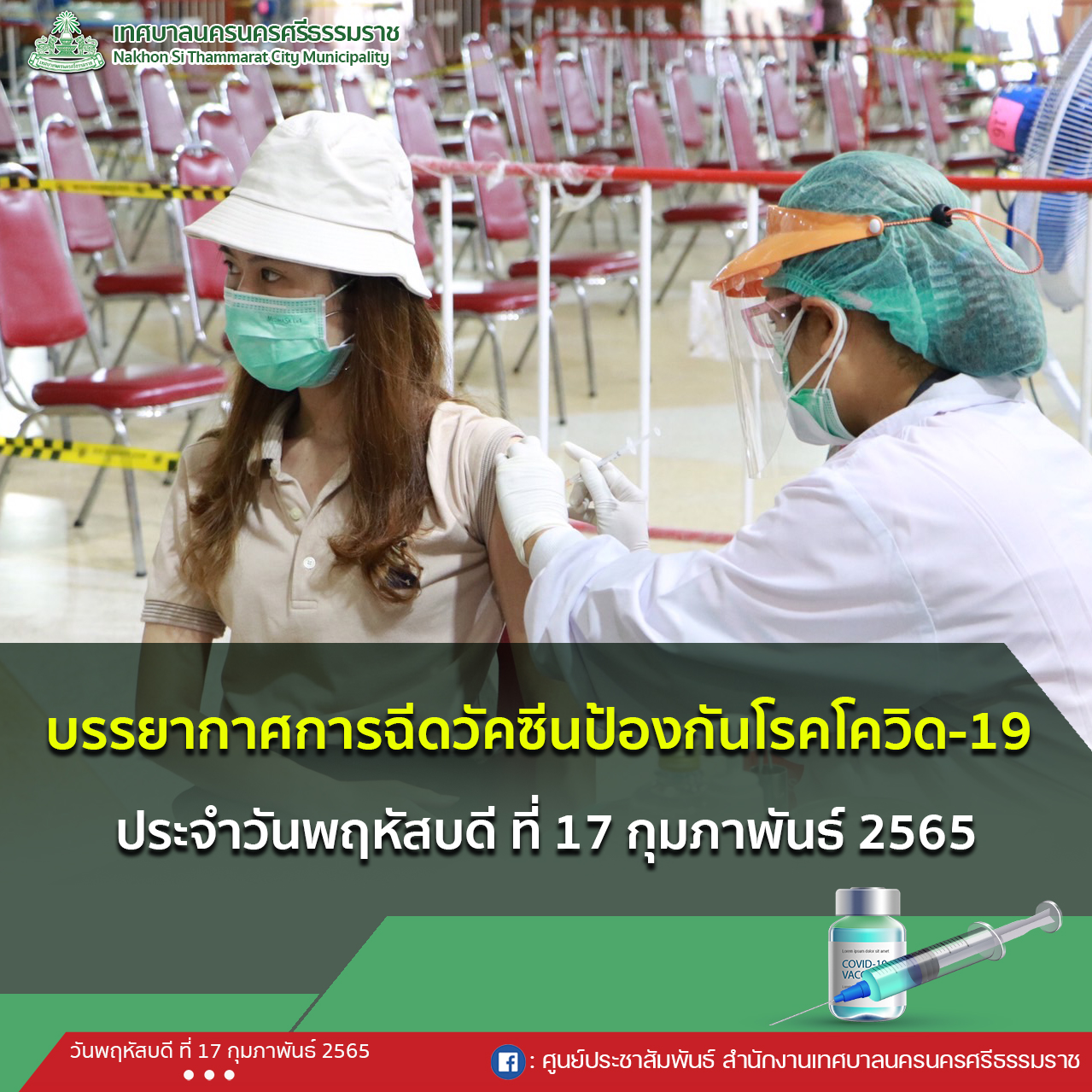 วันพฤหัสบดีที่ 17 กุมภาพันธ์ พ.ศ. 2565 เวลา 08.30 น. ณ หอประชุมเมือง (ทุ่งท่าลาด) ดร.กณพ เกตุชาติ นายกเทศมนตรีนครนครศรีธรรมราช มอบหมายให้กองการแพทย์โรงพยาบาลเทศบาลนครนครศรีธรรมราช ดำเนินการฉีดวัคซีนป้องกันโควิด-19 สำหรับนักเรียน อายุ 5-11 ปี ซึ่งบรรยากาศเป็นไปด้วยความเรียบร้อย มีการเว้นระยะห่างเพื่อความปลอดภัยสำหรับผู้ที่มารอฉีดวัคซีน และมีการตรวจคัดกรองก่อนที่จะเข้ารับการฉีดวัคซีนอย่างเข้มข้น สอบถามเพิ่มเติมได้ที่ 075-356014 ต่อ 0 – 088-2620737, 088-2620738 ในวันและเวลาราชการ ตั้งแต่เวลา 08.30 น.-15.30 น. หรือ https://www.nakhoncity.org/news_detail.php?sId=2004