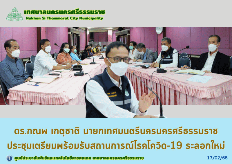 ดร.กณพ เกตุชาติ นายกเทศมนตรีนครนครศรีธรรมราช ประธานการประชุมเตรียมพร้อมรับสถานการณ์โควิด-19ระลอกใหม่ |