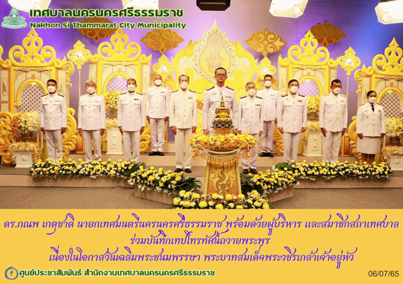 | นายกเทศมนตรีนครนครศรีธรรมราช พร้อมด้วยคณะผู้บริหาร ร่วมบันทึกเทปโทรทัศน์ถวายพระพร เนื่องในโอกาสวันเฉลิมพระชนมพรรษา พระบาทสมเด็จพระวชิรเกล้าเจ้าอยู่หัว |