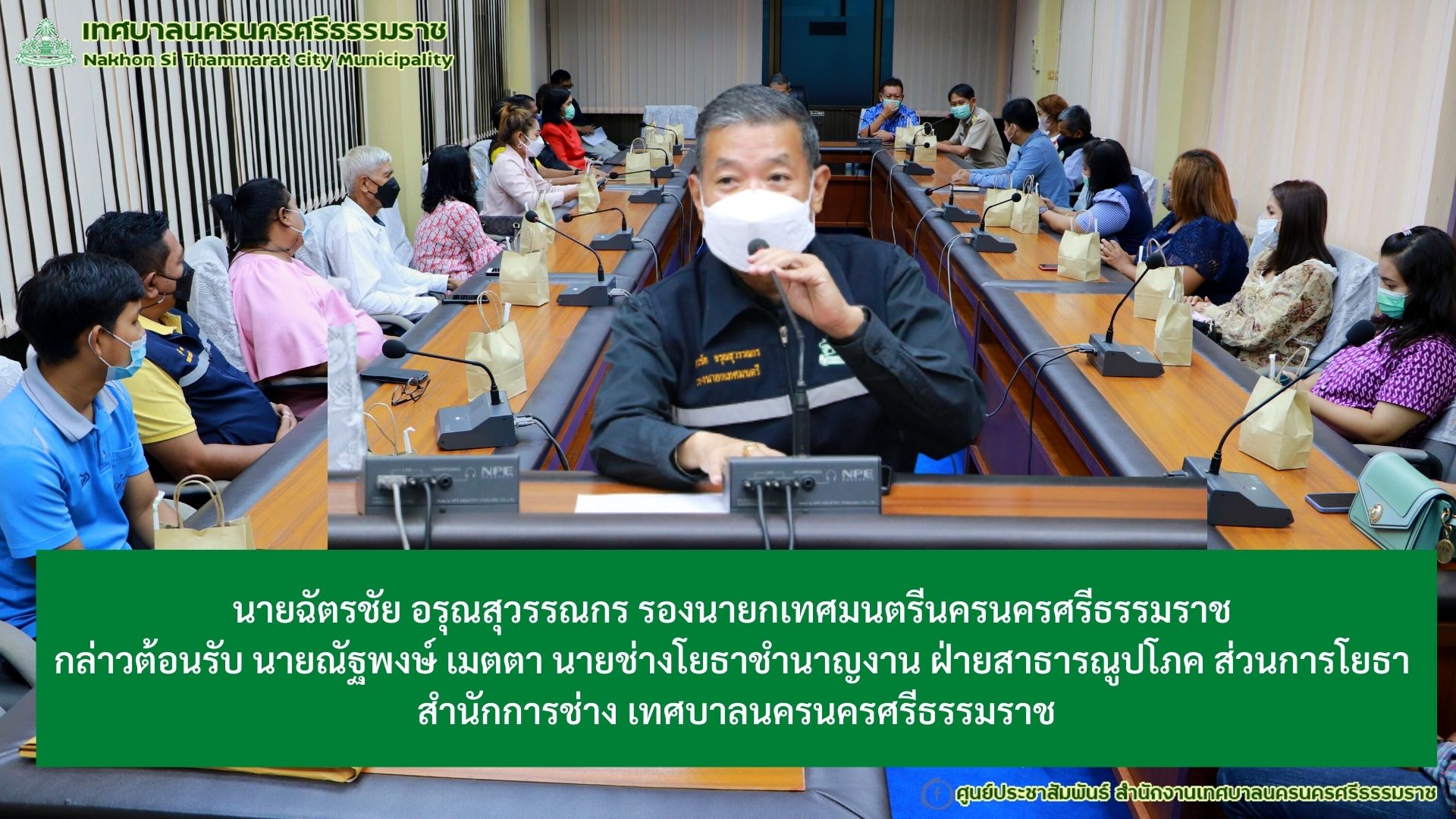 วันพฤหัสบดี ที่ 7 กรกฎาคม 2565 เวลา 10.00 น. ณ ห้องประชุมสำนักงานเทศบาลนครนครศรีธรรมราช ชั้น 2 นายฉัตรชัย อรุณสุวรรณกร รองนายกเทศมนตรีนครนครศรีธรรมราช กล่าวต้อนรับ นายณัฐพงษ์ เมตตา นายช่างโยธาอาวุโส องค์การบริหารส่วนตำบลท้ายสำเภา ซึ่งโอนย้ายมาดำรงตำแหน่ง นายช่างโยธาชำนาญงาน ฝ่ายสาธารณูปโภค ส่วนการโยธา สำนักการช่าง เทศบาลนครนครศรีธรรมราช