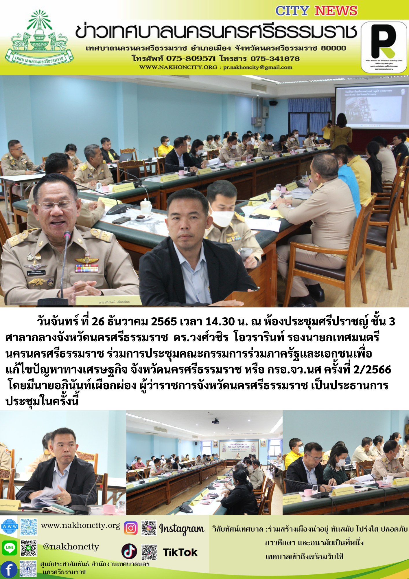 วันจันทร์ ที่ 26 ธันวาคม 2565 เวลา 14.30 น. ณ ห้องประชุมศรีปราชญ์ ชั้น 3 ศาลากลางจังหวัดนครศรีธรรมราช ดร.วงศ์วชิร โอวรารินท์ รองนายกเทศมนตรีนครนครศรีธรรมราช ร่วมการประชุมคณะกรรมการร่วมภาครัฐและเอกชนเพื่อแก้ไขปัญหาทางเศรษฐกิจ จังหวัดนครศรีธรรมราช หรือ กรอ.จว.นศ ครั้งที่ 2/2566 โดยมีนายอภินันท์เผือกผ่อง ผู้ว่าราชการจังหวัดนครศรีธรรมราช เป็นประธานการประชุมในครั้งนี้ |