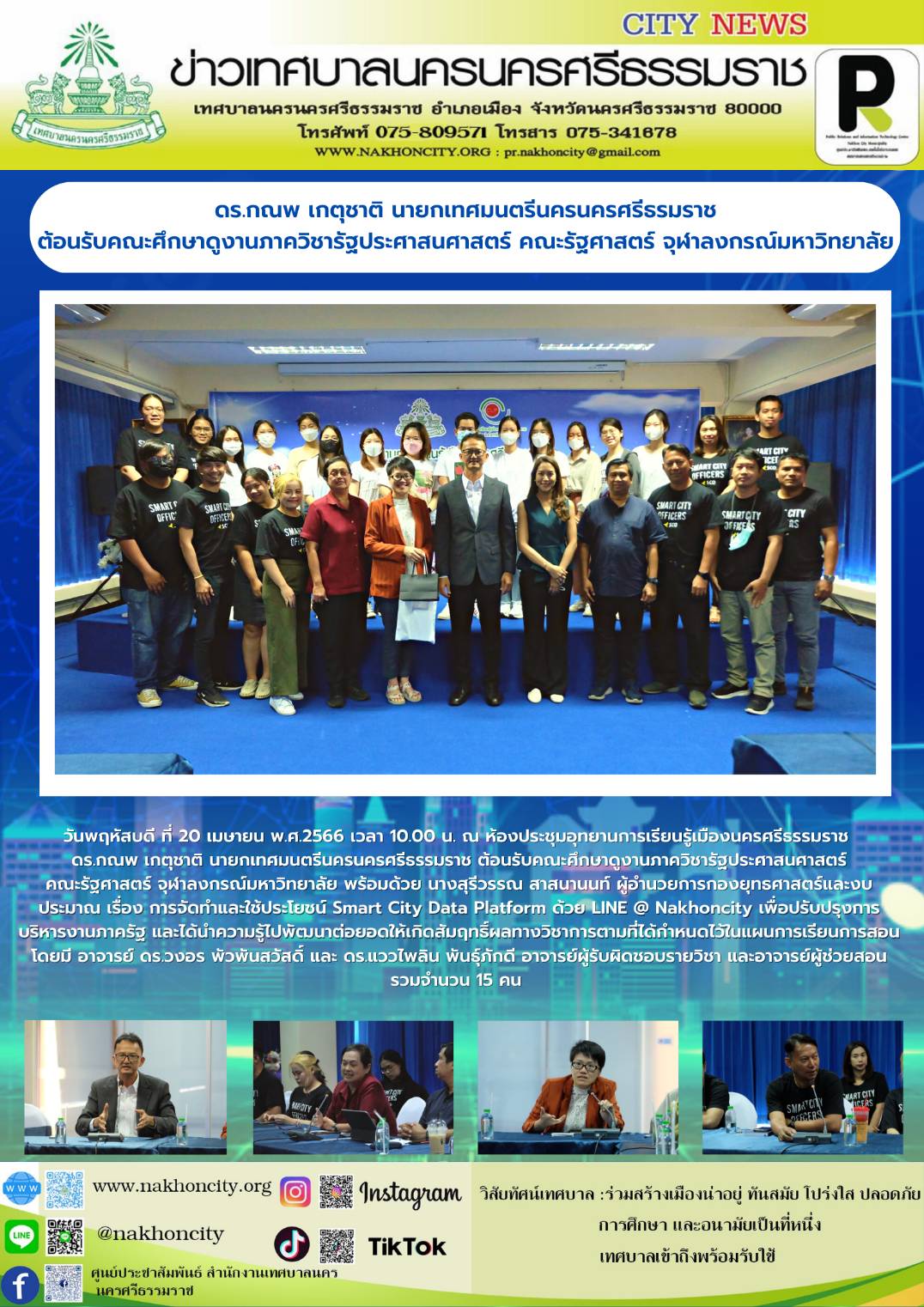 ดร.กณพ เกตุชาติ นายกเทศมนตรีนครนครศรีธรมราช ต้อนรับคณะศึกษาดูงานภาควิชารัฐประศาสนศาสตร์ คณะรัฐศาสตร์ จุฬาลงกรณ์มหาวิทยาลัย |