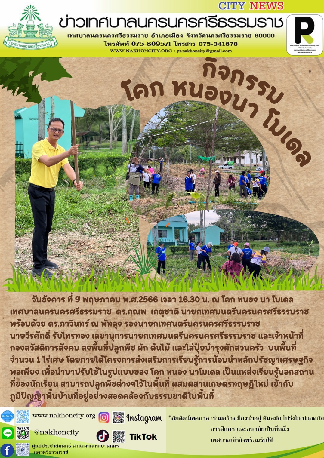 ดร.กณพ เกตุชาติ นายกเทศมนตรีนครนครศรีธรรมราช นำเจ้าหน้าที่ ร่วมกิจกรรม โคก หนอง นา โมเดล เทศบาลนครนครศรีธรรมราช ประจำวันอังคาร ที่ 9 พฤษภาคม 2566 |