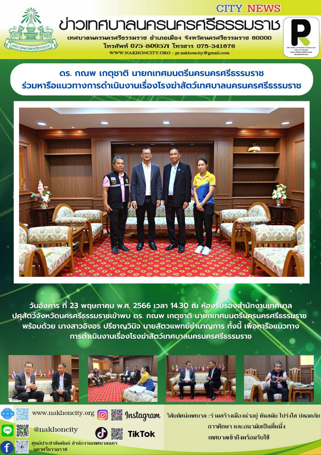 ดร. กณพ เกตุชาติ นายกเทศมนตรีนครนครศรีธรรมราช ร่วมหารือแนวทางการดำเนินงานเรื่องโรงฆ่าสัตว์เทศบาลนครนครศรีธรรมราช |