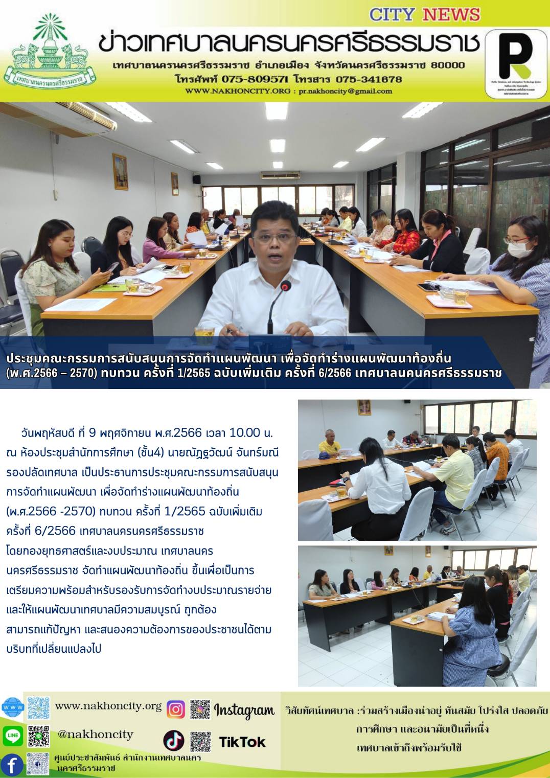 เทศบาลนครนครศรีธรรมราช ประชุมคณะกรรมการสนับสนุนการจัดทำแผนพัฒนา เพื่อจัดทำร่างแผนพัฒนาท้องถิ่น (พ.ศ.2566 – 2570) ทบทวน ครั้งที่ 1/2565 ฉบับเพิ่มเติม ครั้งที่ 6/2566 เทศบาลนครนครศรีธรรมราช |