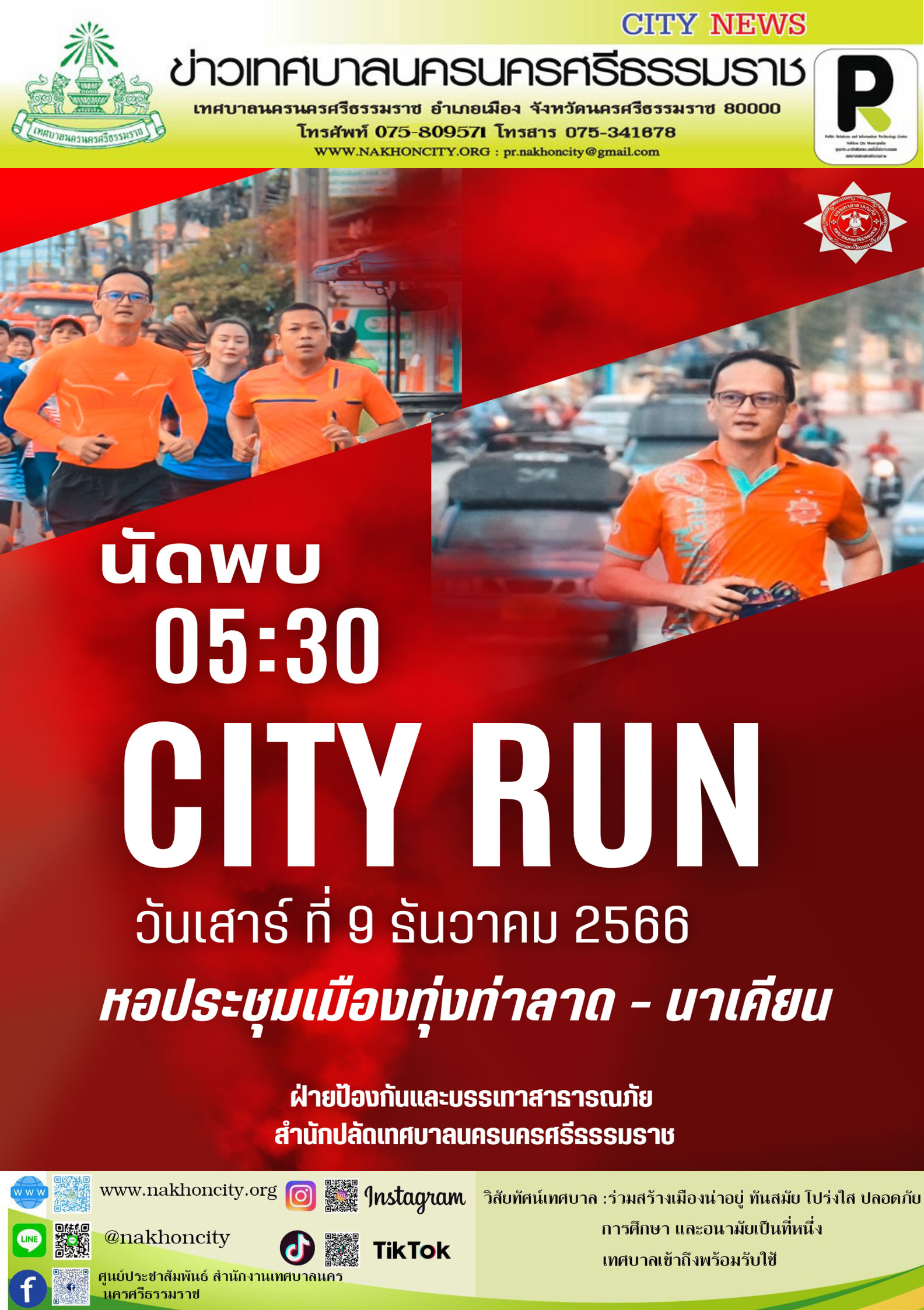 | เทศบาลนครนครศรีธรรมราช เชิญชวนประชาชน ร่วมวิ่งออกกำลังกาย ทุกเช้าวันเสาร์ กับกิจกรรม "City Run" |
