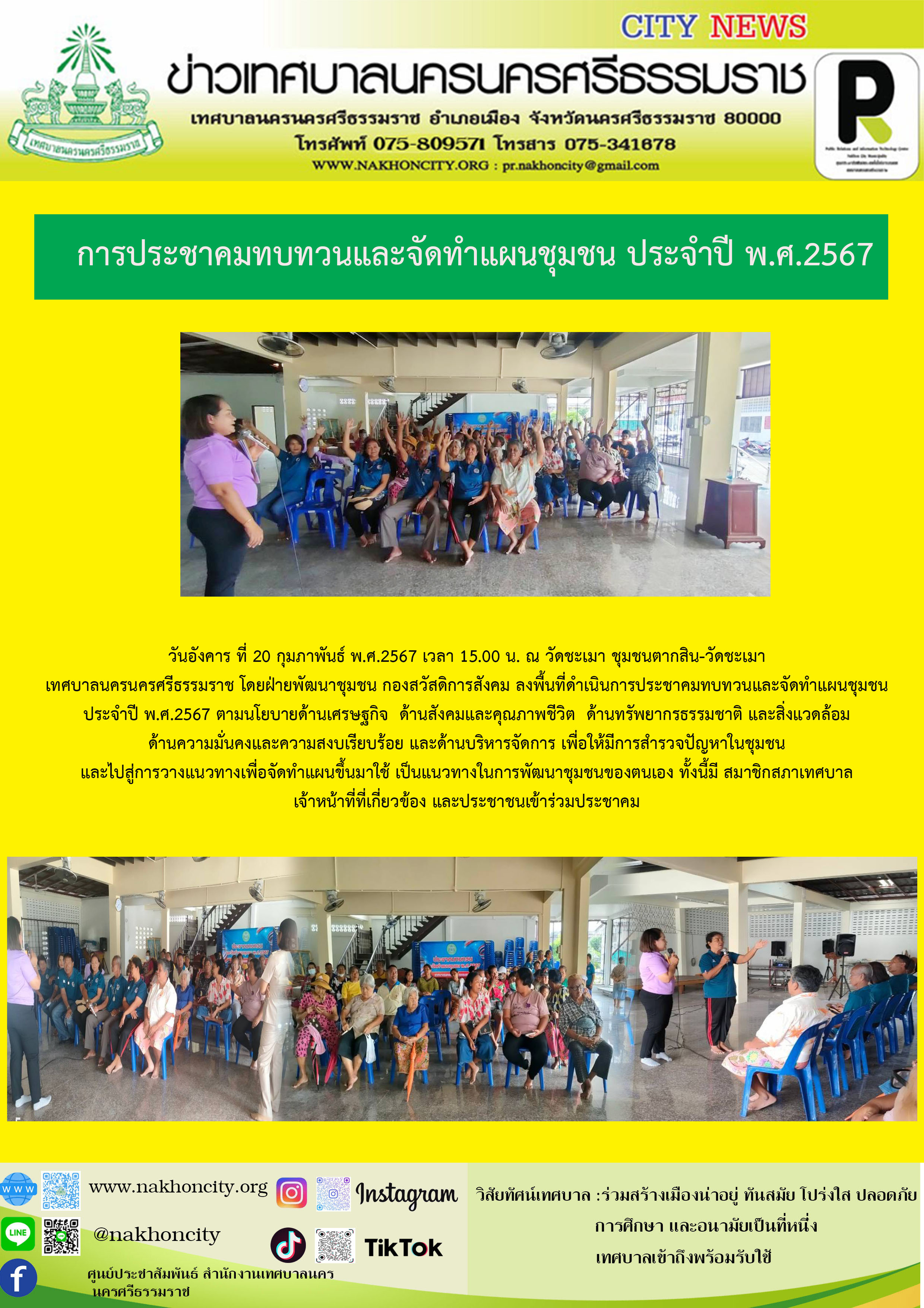| เทศบาลนครนครศรีธรรมราช ลงพื้นที่ดำเนินการประชาคมทบทวนและจัดทำแผนชุมชน ประจำปี พ.ศ.2567 |