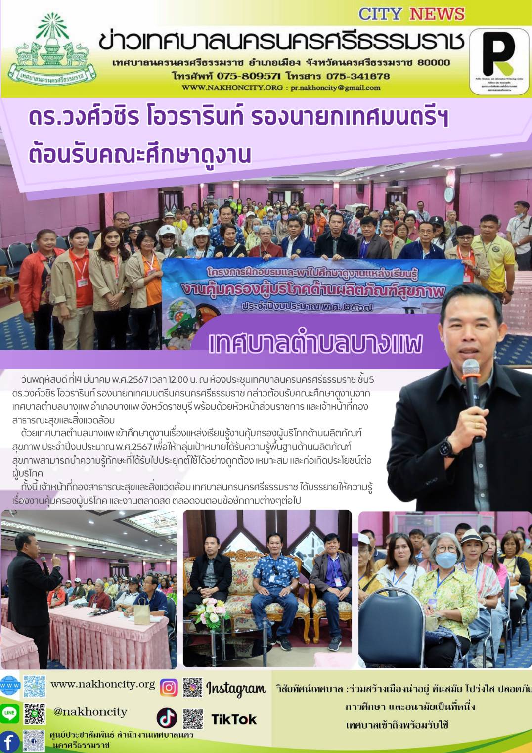 ดร.วงศ์วชิร โอวรารินท์ รองนายกเทศมนตรีนครนครศรีธรรมราช กล่าวต้อนรับคณะศึกษาดูงานจากเทศบาลตำบลบางแพ อำเภอบางแพ จังหวัดราชบุรี |
