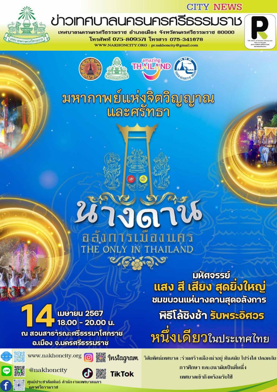 สัมผัสบรรยากาศแห่งความงดงาม ความศักดิ์สิทธิ์ และความภาคภูมิใจ กับเทศกาลมหาสงกรานต์ที่ยิ่งใหญ่แห่งปี “นางดาน อลังการเมืองนคร The Only In Thailand 2024” |