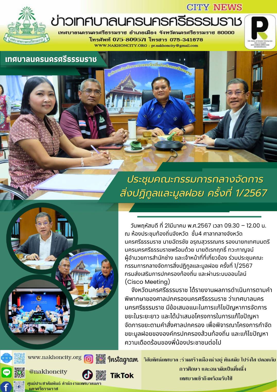 นายฉัตรชัย อรุณสุวรรณกร รองนายกเทศมนตรีนครนครศรีธรรมราช พร้อมด้วย นายดิเรกฤทธิ์ ทวะกาญจน์ ผู้อำนวยการสำนักช่าง ร่วมประชุมคณะกรรมการกลางจัดการสิ่งปฏิกูลและมูลฝอย ครั้งที่ 1/2567 |