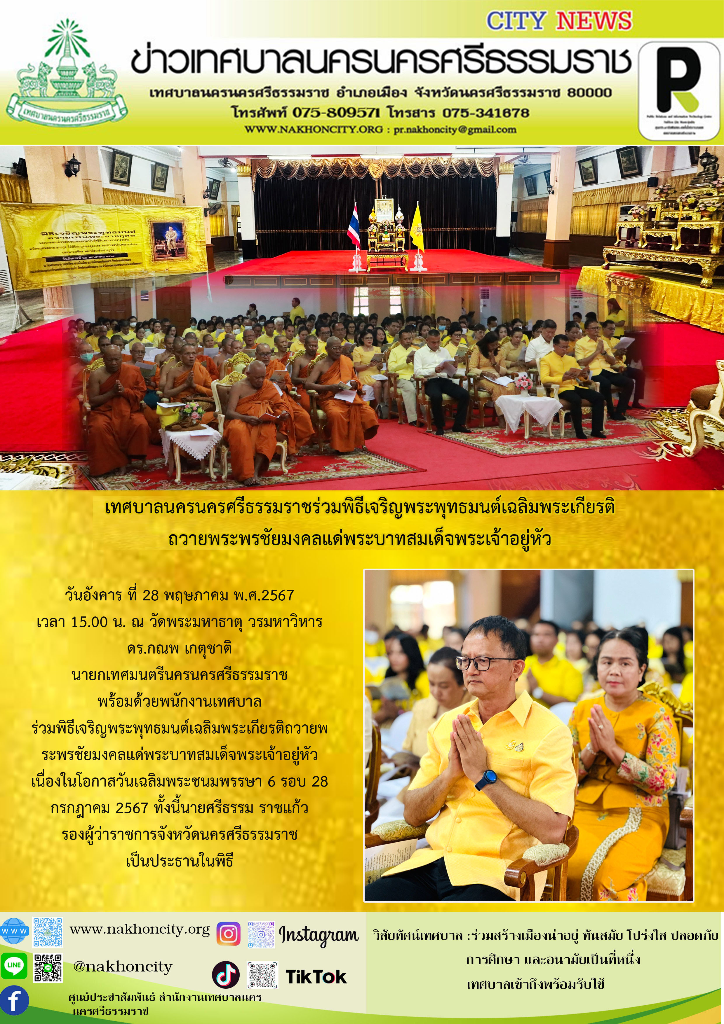 เทศบาลนครนครศรีธรรมราชร่วมพิธีเจริญพระพุทธมนต์เฉลิมพระเกียรติถวายพระพรชัยมงคลแด่พระบาทสมเด็จพระเจ้าอยู่หัว |