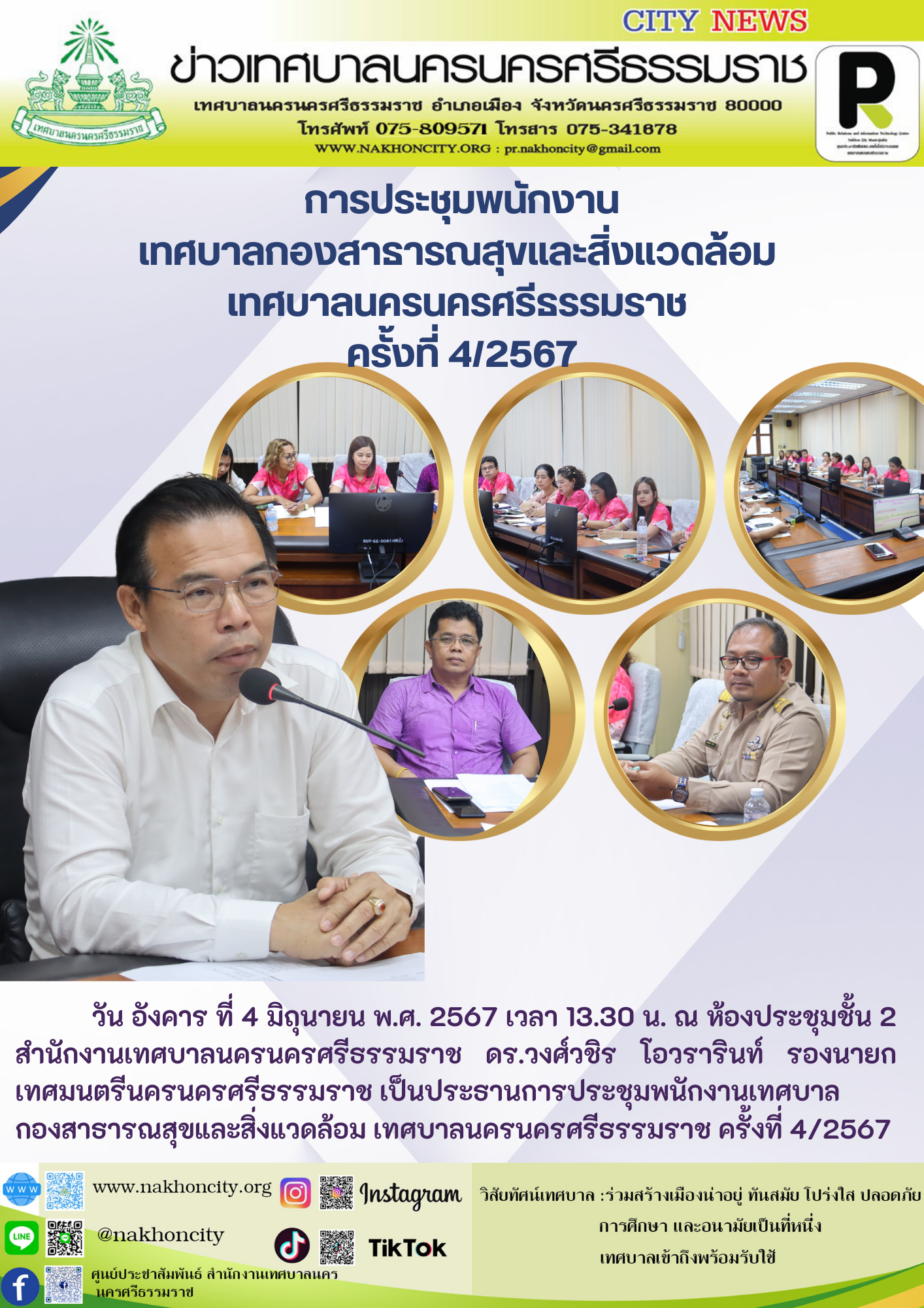 ดร.วงศ์วชิร โอวรารินท์ รองนายกเทศมนตรีนครนครศรีธรรมราช เป็นประธานการประชุมพนักงานเทศบาล กองสาธารณสุขและสิ่งแวดล้อม เทศบาลนครนครศรีธรรมราช ครั้งที่ 4/2567 |