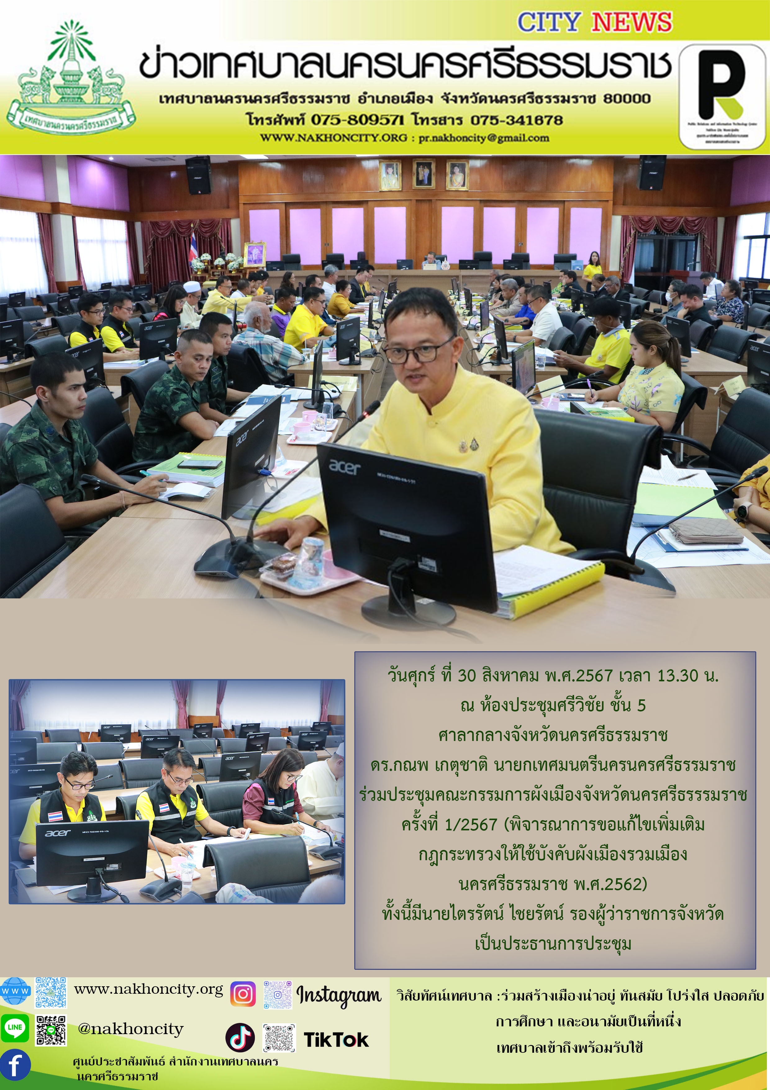 นายกเทศมนตรีนครนครศรีธรรมราชร่วมประชุมคณะกรรมการผังเมืองจังหวัดนครศรีธรรรมราช ครั้งที่ 1/2567 (พิจารณาการขอแก้ไขเพิ่มเติมกฎกระทรวงให้ใช้บังคับผังเมืองรวมเมืองนครศรีธรรมราช พ.ศ.2562) |