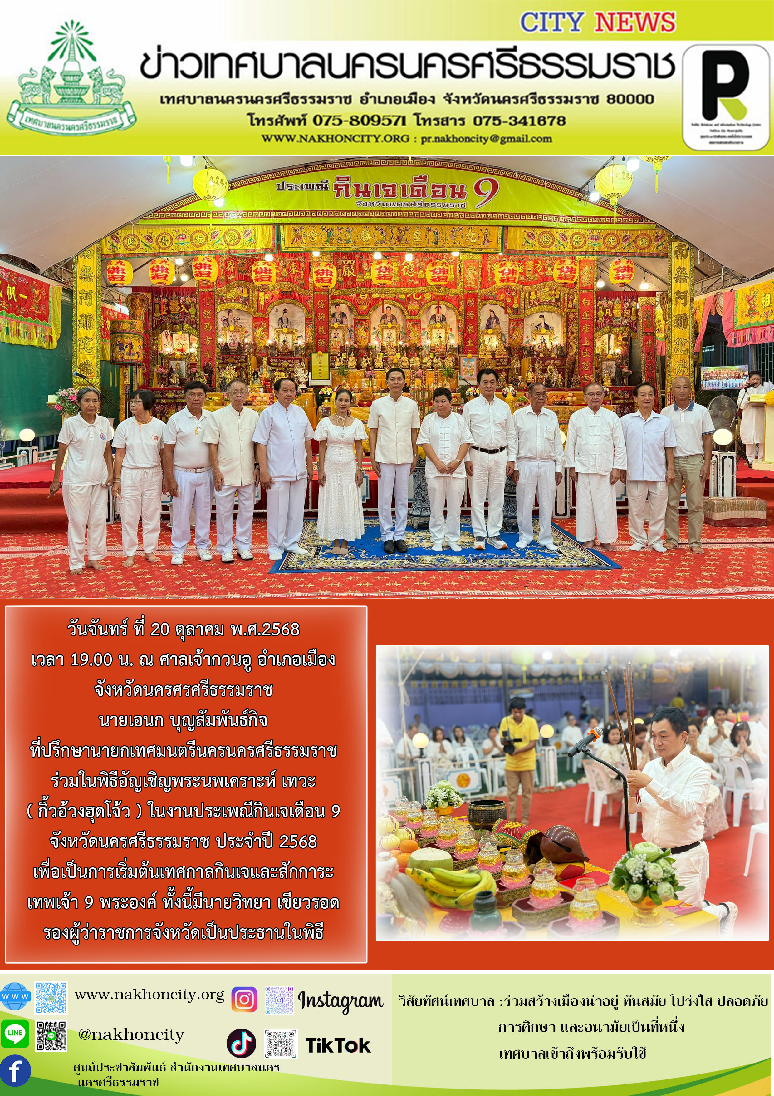 ที่ปรึกษานายกเทศมนตรีนครนครศรีธรรมราช ร่วมในพิธีอัญเชิญพระนพเคราะห์ เทวะ ( กิ้วอ้วงฮุดโจ้ว ) ในงานประเพณีกินเจเดือน 9 จังหวัดนครศรีธรรมราช ประจำปี 2568 |